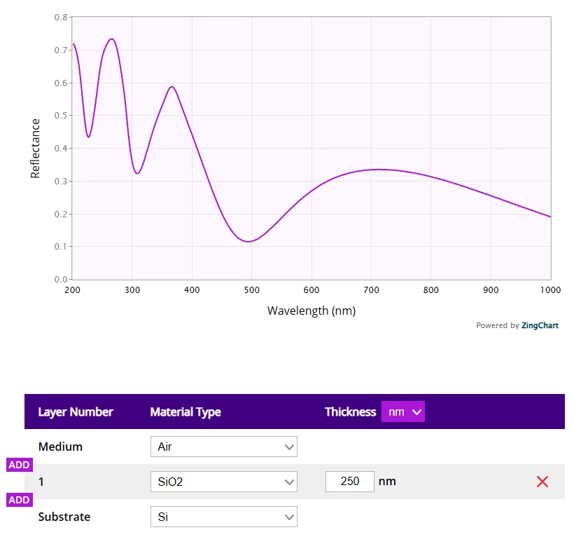 Calculate reflectance caused by thin-film interference on up to 20 films using our popular reflectance calculator.
